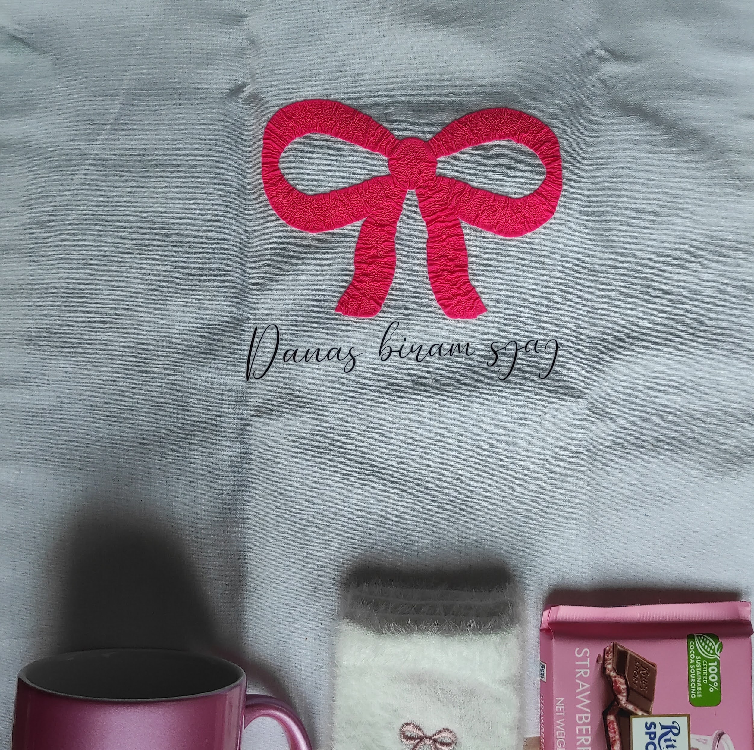 ✓ Platnena torbica s motivom mašne i natpisom “Danas biram sjaj”